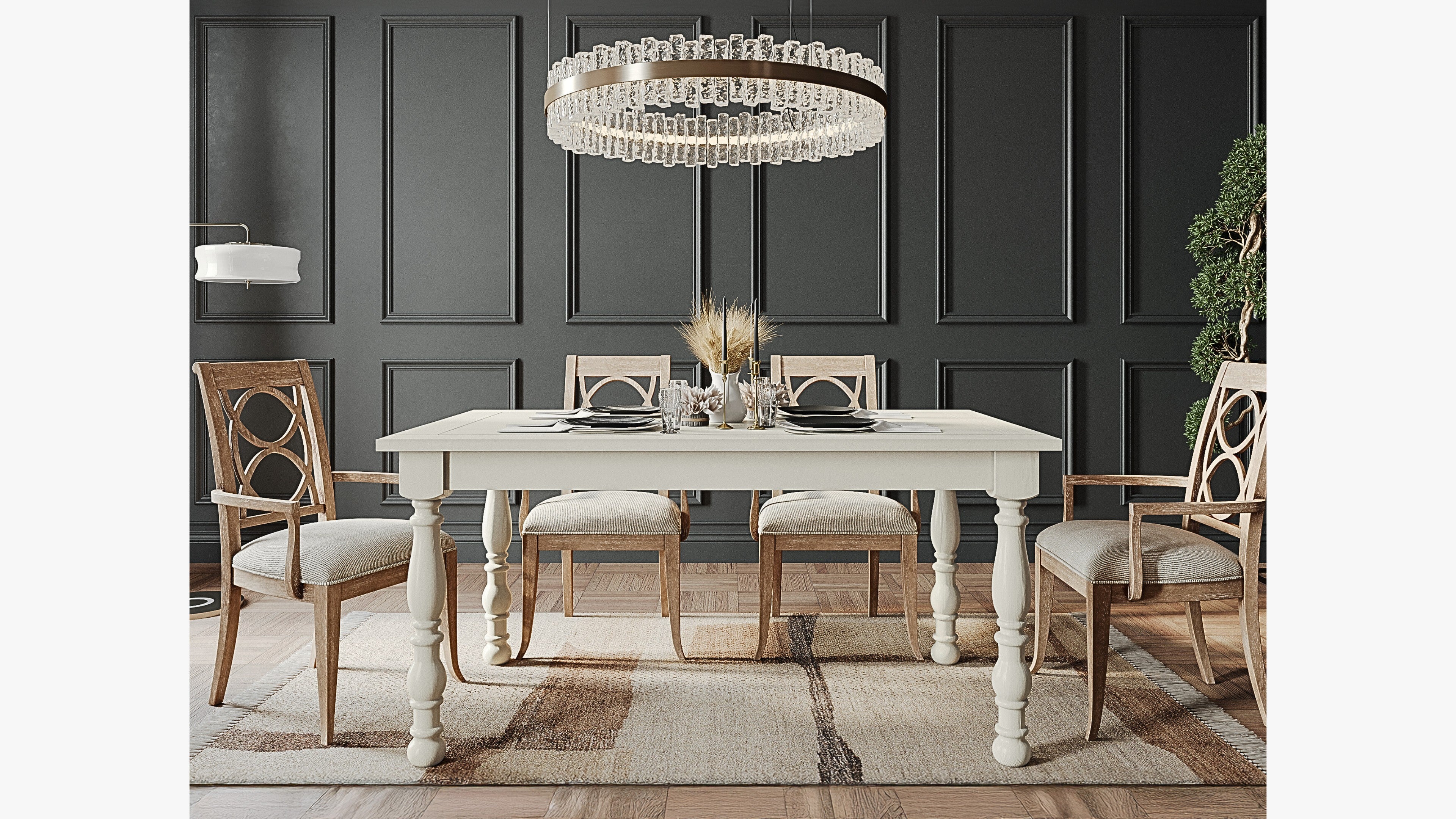 Your farmhouse table's creamy white oak finish requires only gentle, straightforward care to stay beautiful. Wipe surfaces with a damp cloth to handle everyday cleaning needs. Don't leave spills unattended. The creamy white oak finish is crafted to withstand daily use while maintaining its modern, farmhouse appeal.