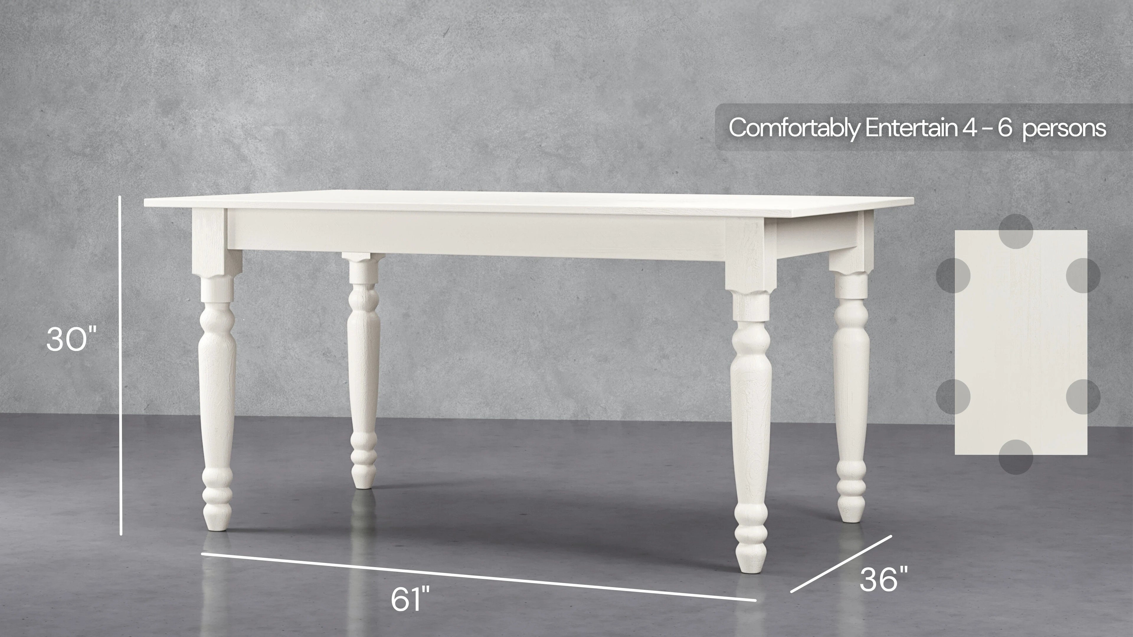 Sawyer Real Solid Wood Rustic Dining Farmhouse Table Handcrafted Seats 4 to 6 - Creamy White Oak
